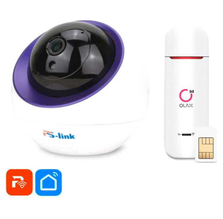 Комплект 4G видеонаблюдения состоит из WiFi камеры и мобильного WIFI роутера с поддержкой сим карт различных операторов мобильной связи. Данное решение применимо на объектах без интернета, но требуется оперативно организовать видеонаблюдение. Компактная беспроводная поворотная WIFI камера с матрицей разрешением 2 Мп (GC2053) и процессором GK7102S отлично подойдет для организации видеонаблюдения небольшого объекта площадью до 20-30 квадратных метров. Благодаря встроенной ИК-подсветке вы сможете видеть изображение до 10 метров в условиях полного отсутствия освещения, просматривая удаленно видео из любой точки мира со смартфона. Камера подключается по сети WIFI. Просмотр осуществляется через мобильное приложение PS-link, SmartLife и других совместимых с экосистемой Tuya. Поворотные возможности (355 и 90 градусов) заменят несколько статичных камер. Данная камера отличается от обычной WiFi камеры возможностью взаимодействия с другими устройствами системы умного дома, а именно, беспроводной сиреной, розетками, контроллерами питания, выключателями. Достаточно несколькими нажатиями в приложении на смартфоне создать сценарий и по указанному событию устройства умного дома могут изменить режим работы. Кроме записи видео на microSD карту имеется возможность записи в платное облако (оплата возможна лишь в приложении smart life).